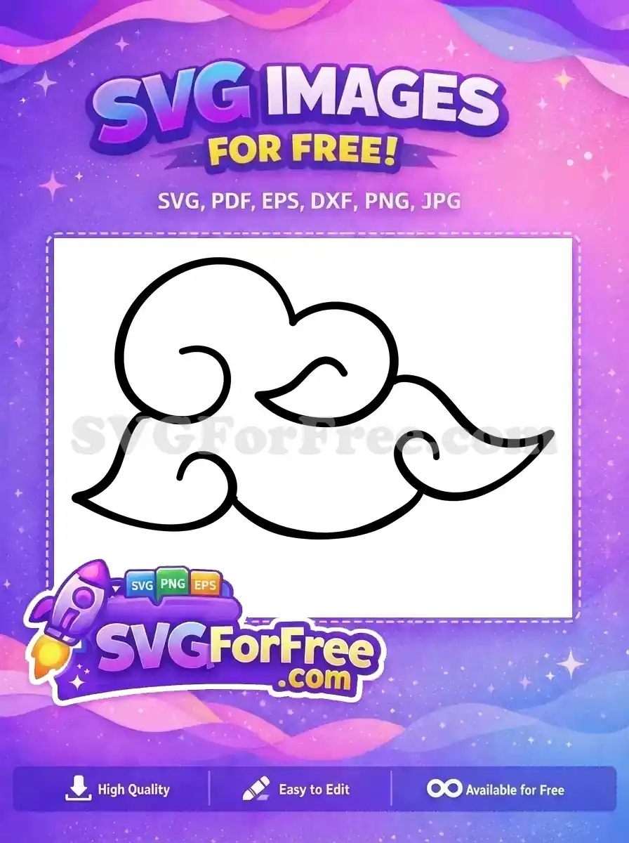 Discover this free, elegant decorative banner SVG, perfect for adding a stylish touch to your projects with its unique cloud-like swirls. A versatile free design for creative use.