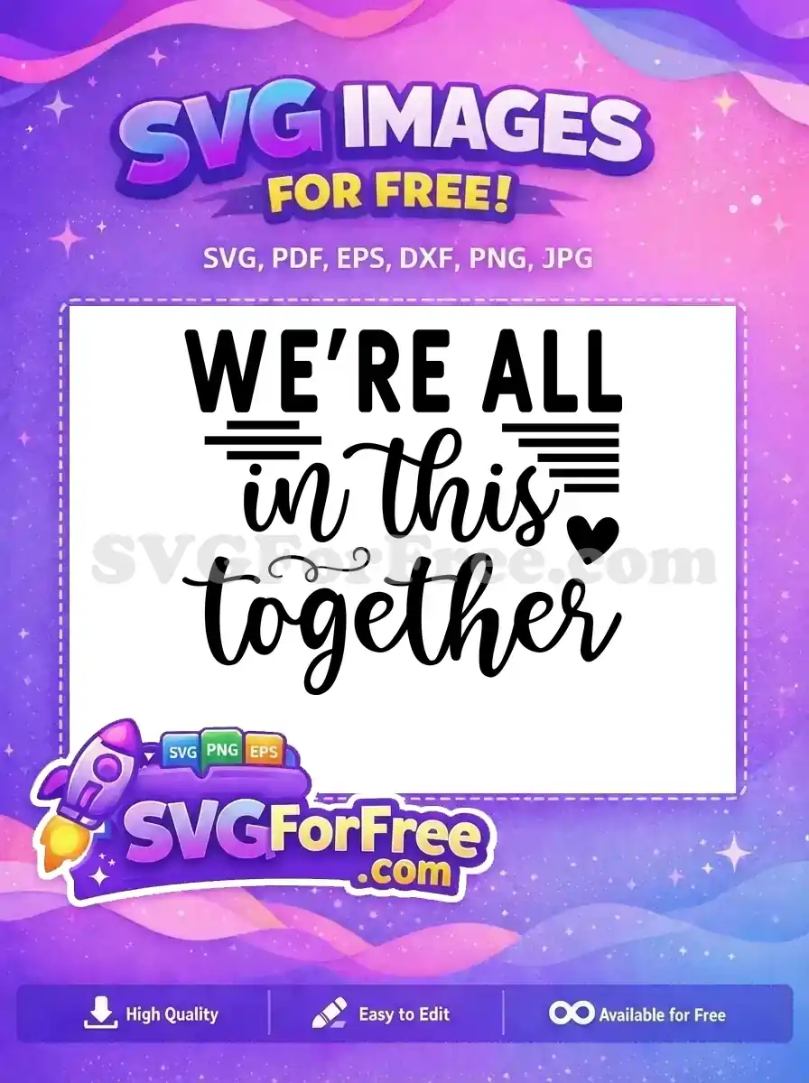 Inspirational text We’re All In This Together in mixed fonts free graphic.