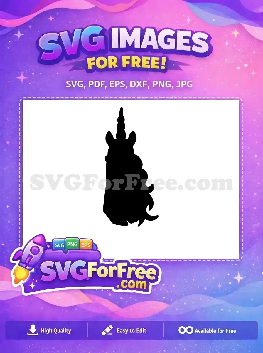 Free Black Silhouette Free Curled Mane Unicorn Free SVG 2 – Instant Download