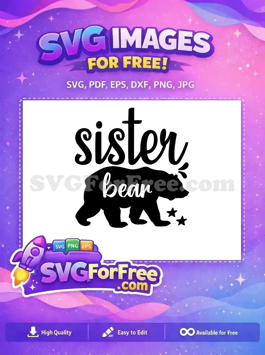 Free Black Sister Bear Free Cute Stars Family Quotes Free SVG – Instant Download