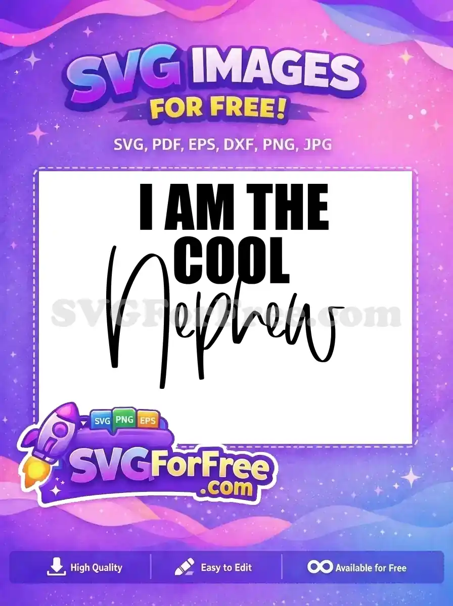 A bold ‘I AM THE COOL Nephew’ design using a mix of strong sans-serif and script fonts. A free vector.