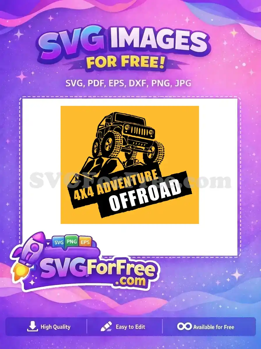 Rugged 4×4 Jeep climbing a hill with ‘Adventure Offroad’ text, a free vehicle graphic.