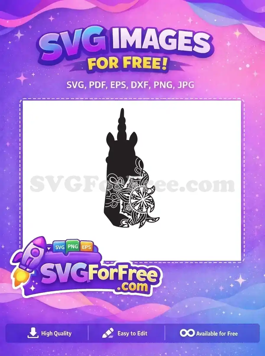 Free Black Unicorn Mandala Free Floral Details Pattern Free SVG – Instant Download