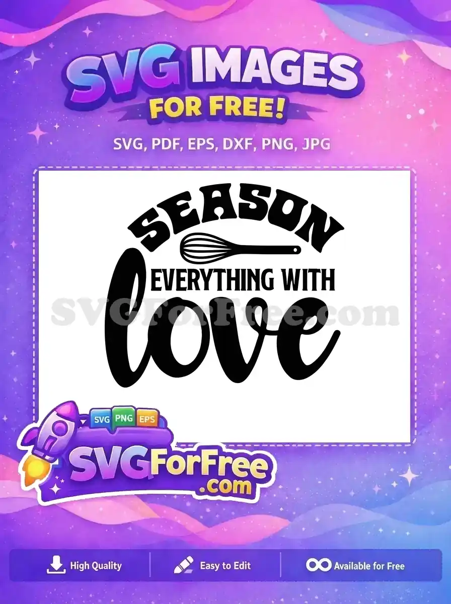 A free design that reads ‘Season everything with love’ with a whisk and heart inside a seasoning shaker.