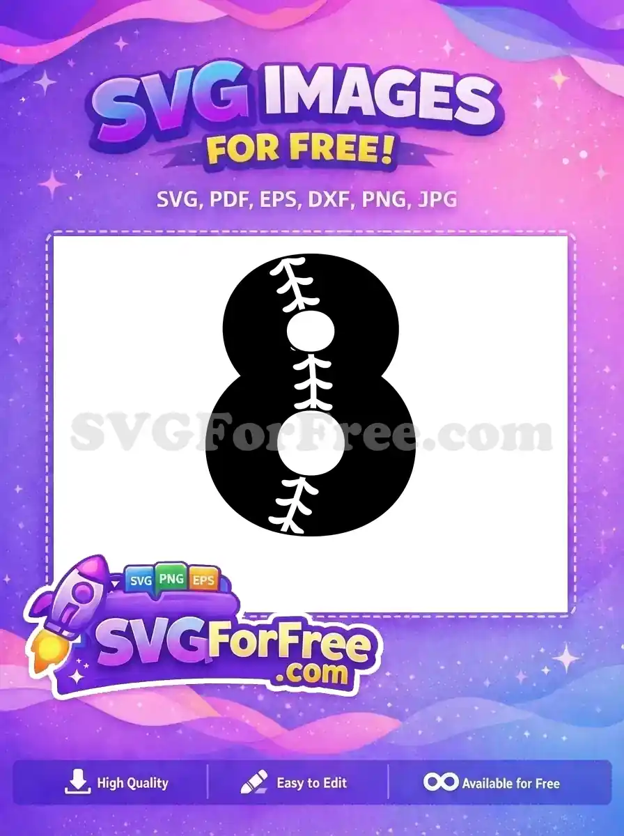 A bold number ‘8’ vector featuring a baseball stitch texture. A no-cost digital file for sports fans.