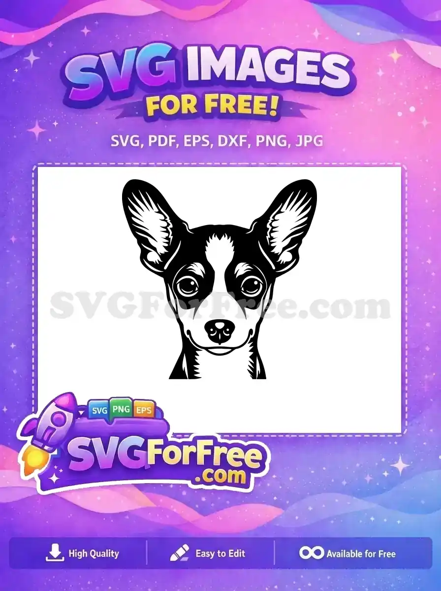 A charming Papillon or Chihuahua mix with large, upright ears and facial markings. Free vector graphic.