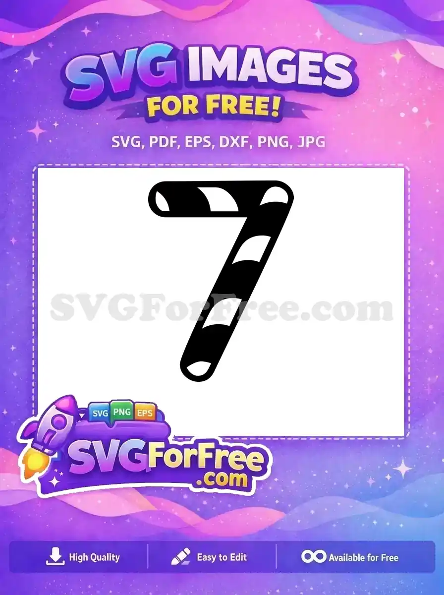 A fun number ‘7’ with a diagonal candy cane stripe pattern. A festive and free downloadable graphic.