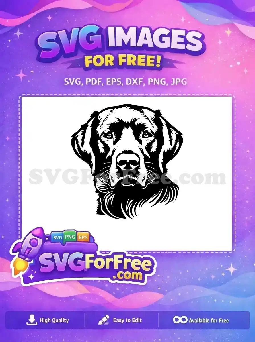 Detailed Labrador Retriever head illustration, front-facing view, available as a free vector graphic.
