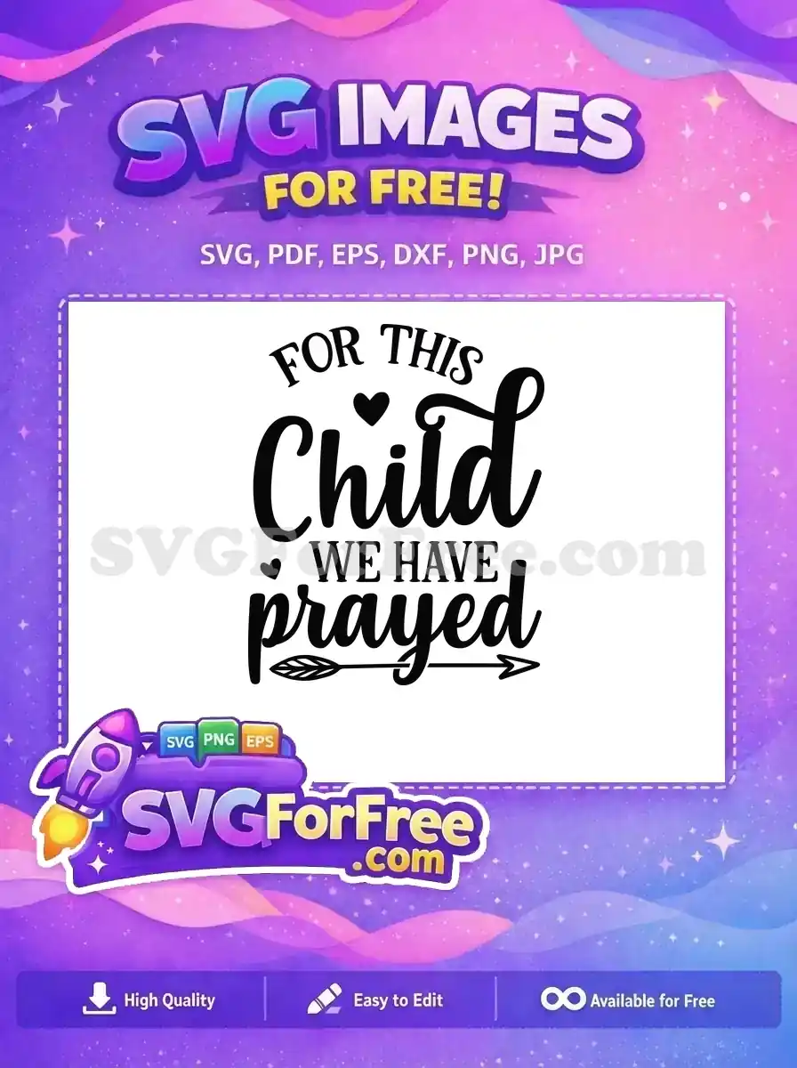 Discover this heartwarming free design, ‘For This Child We Have Prayed.’ Perfect for creating cherished crafts and gifts, celebrating blessings with a beautiful, free SVG.