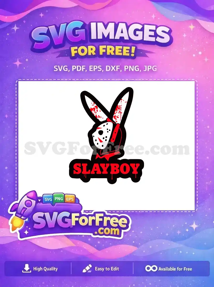 Slayboy bunny logo with Jason hockey mask and blood free design.