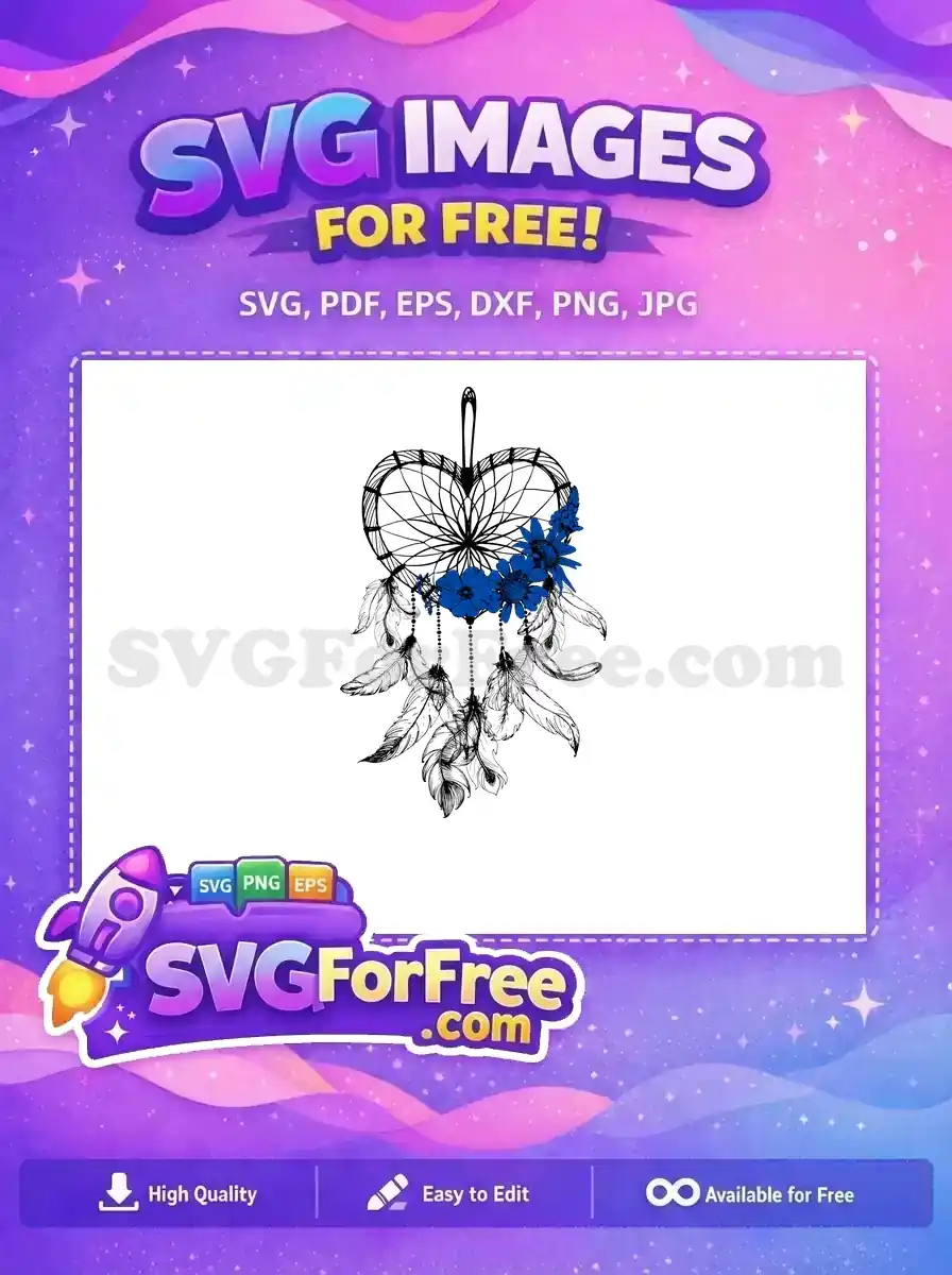 Dreamcatcher heart with blue floral details, a beautiful free vector for vinyl.