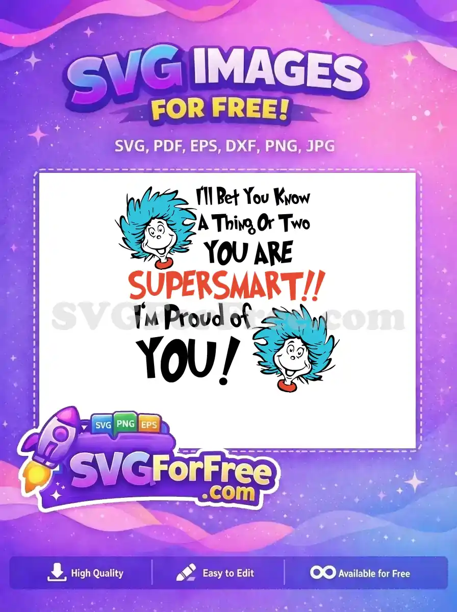 A free Dr. Seuss graphic with Thing 1 & Thing 2 and the quote ‘YOU ARE SUPER SMART!! I’m Proud of YOU!’.