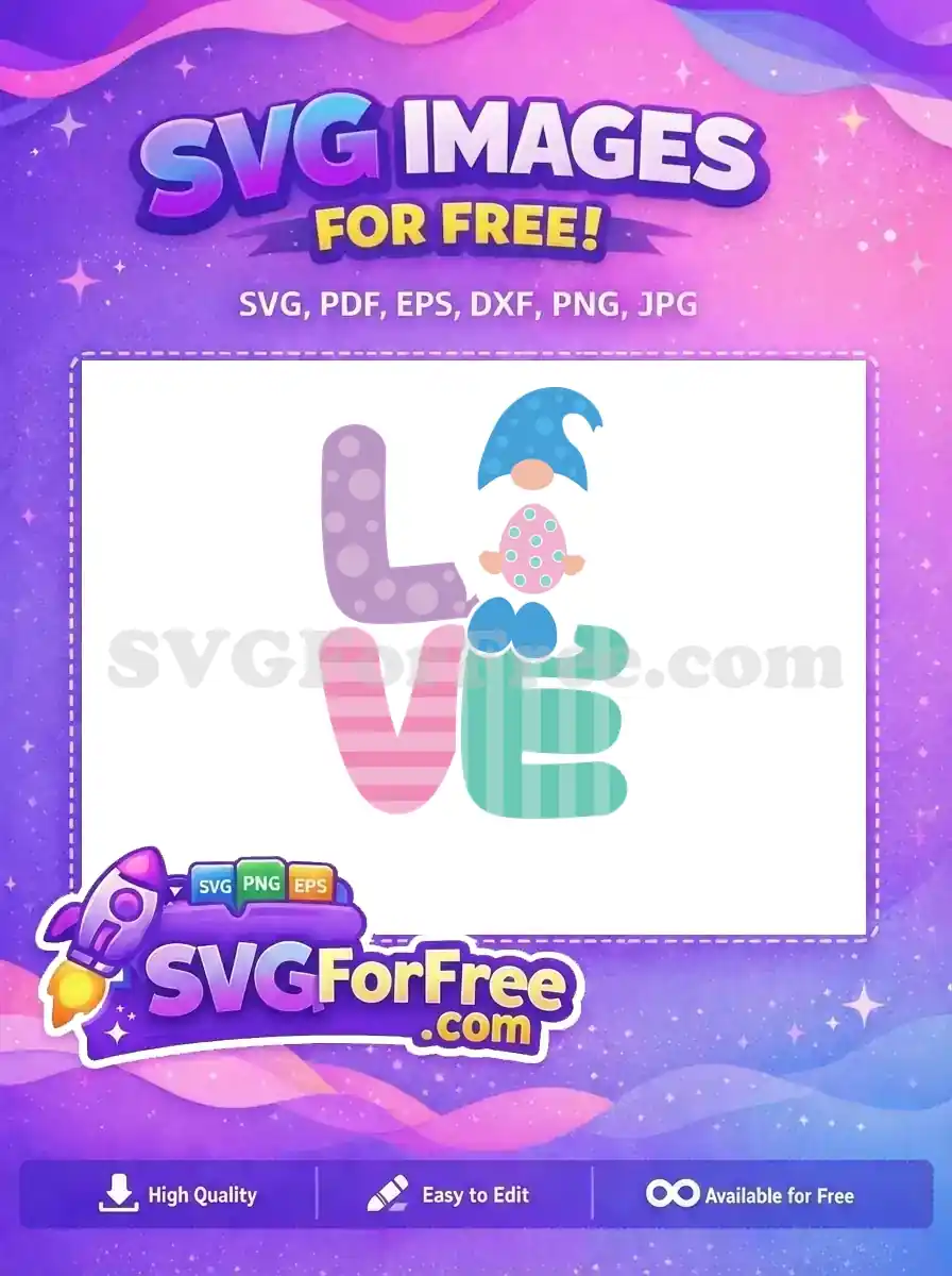 Free Blue Hat Gnome Free Pink Egg Polka Dots Easter Love Free SVG – Instant Download