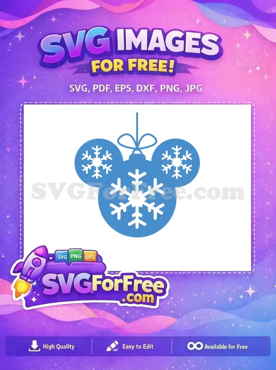 Free Blue Mickey Ornament Free White Snowflakes Christmas Free SVG – Instant Download