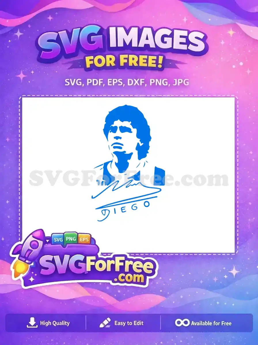 Free Blue Portrait Free Player Signature Diego Maradona Free SVG – Instant Download