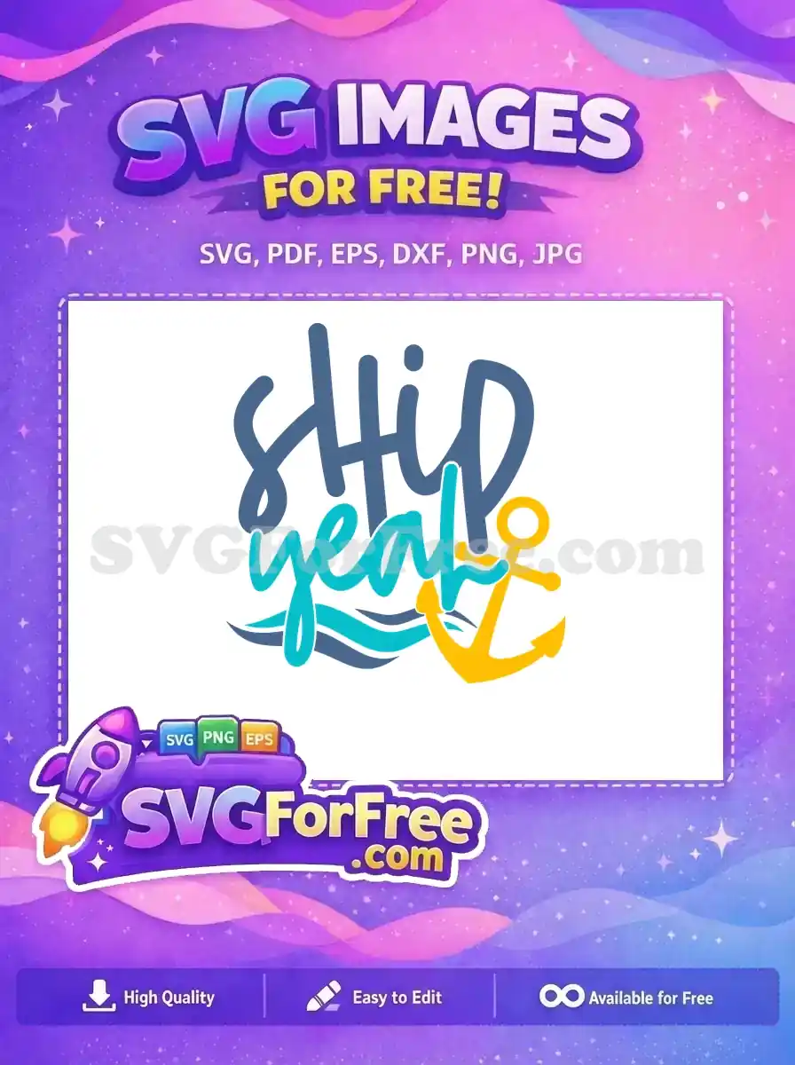 Nautical pun ‘SHIP yeah!’ with anchor and waves, offered as an energetic and free vector download.