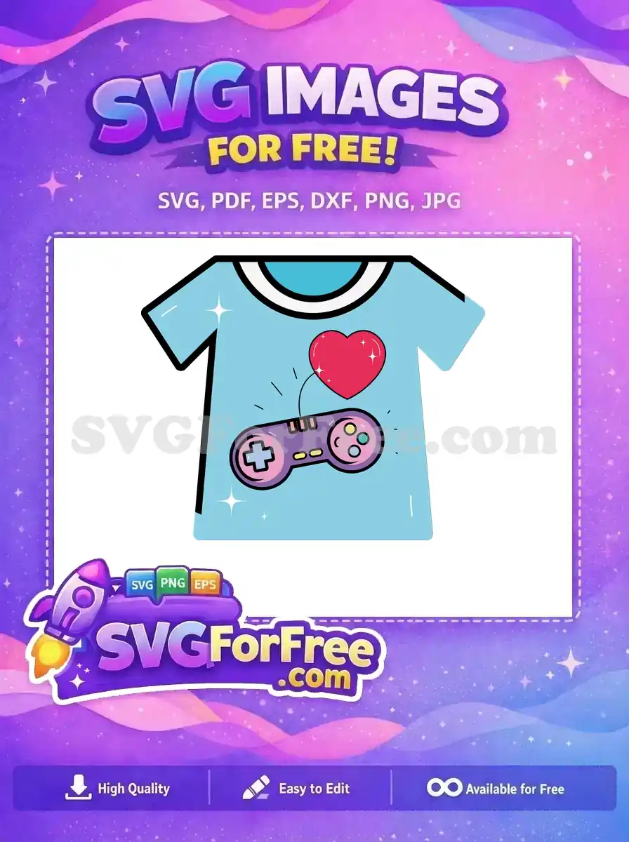 Free Blue Shirt Free Controller Heart Pacman Free SVG – Instant Download