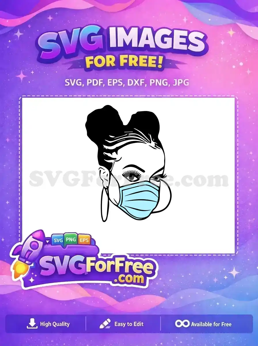 Free Afro Puff Free Ponytail Black Woman Portrait Free SVG – Instant Download
