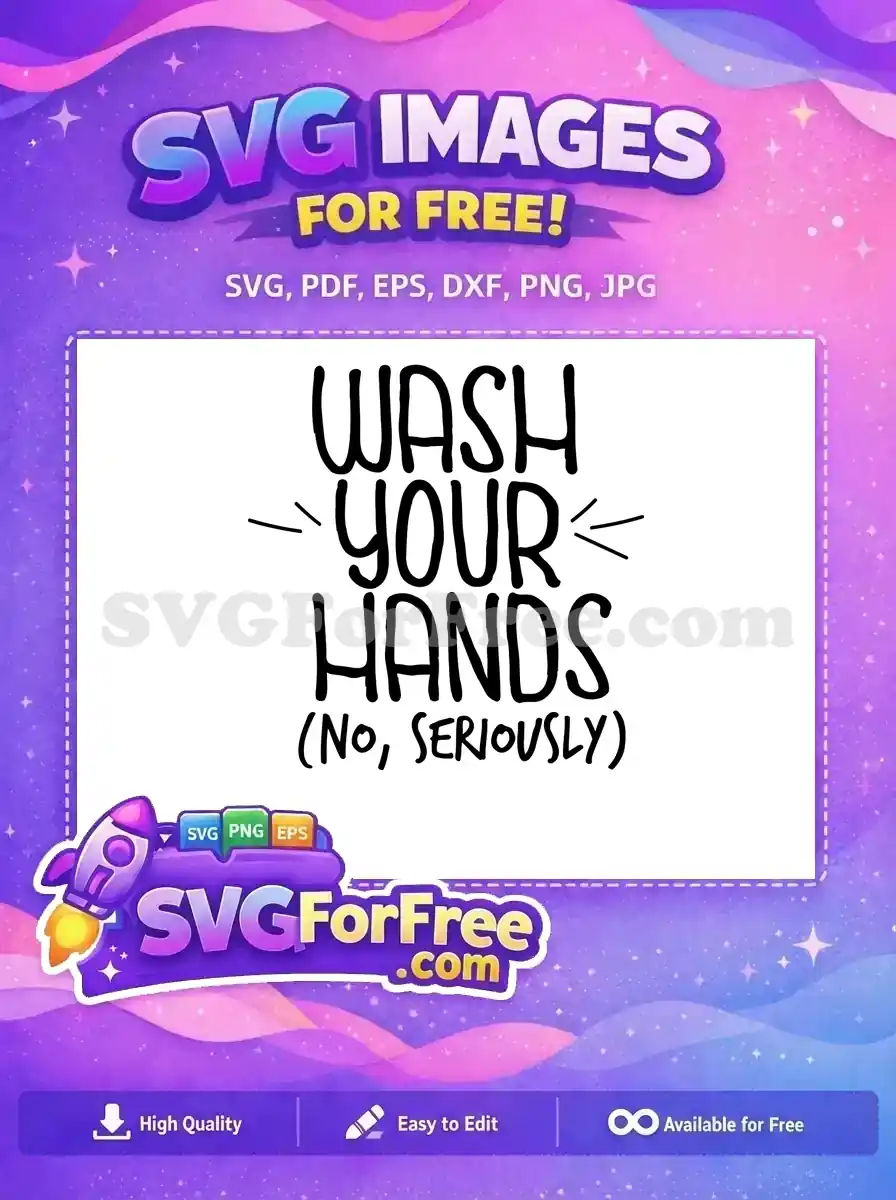 Download this free SVG design! A compelling ‘Wash Your Hands (No, Seriously)’ message. Promote hygiene with this stylish, versatile free vector art. Essential for any space!