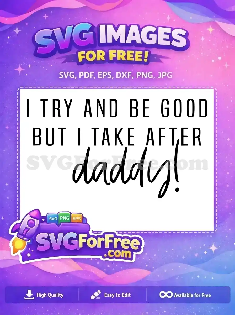 I Try And Be Good But I Take After Daddy funny quote, a free design for mischievous kids.