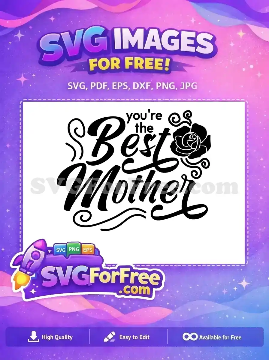 Ornate ‘Best Mother’ text with roses and flourishes, a free vintage style vector.