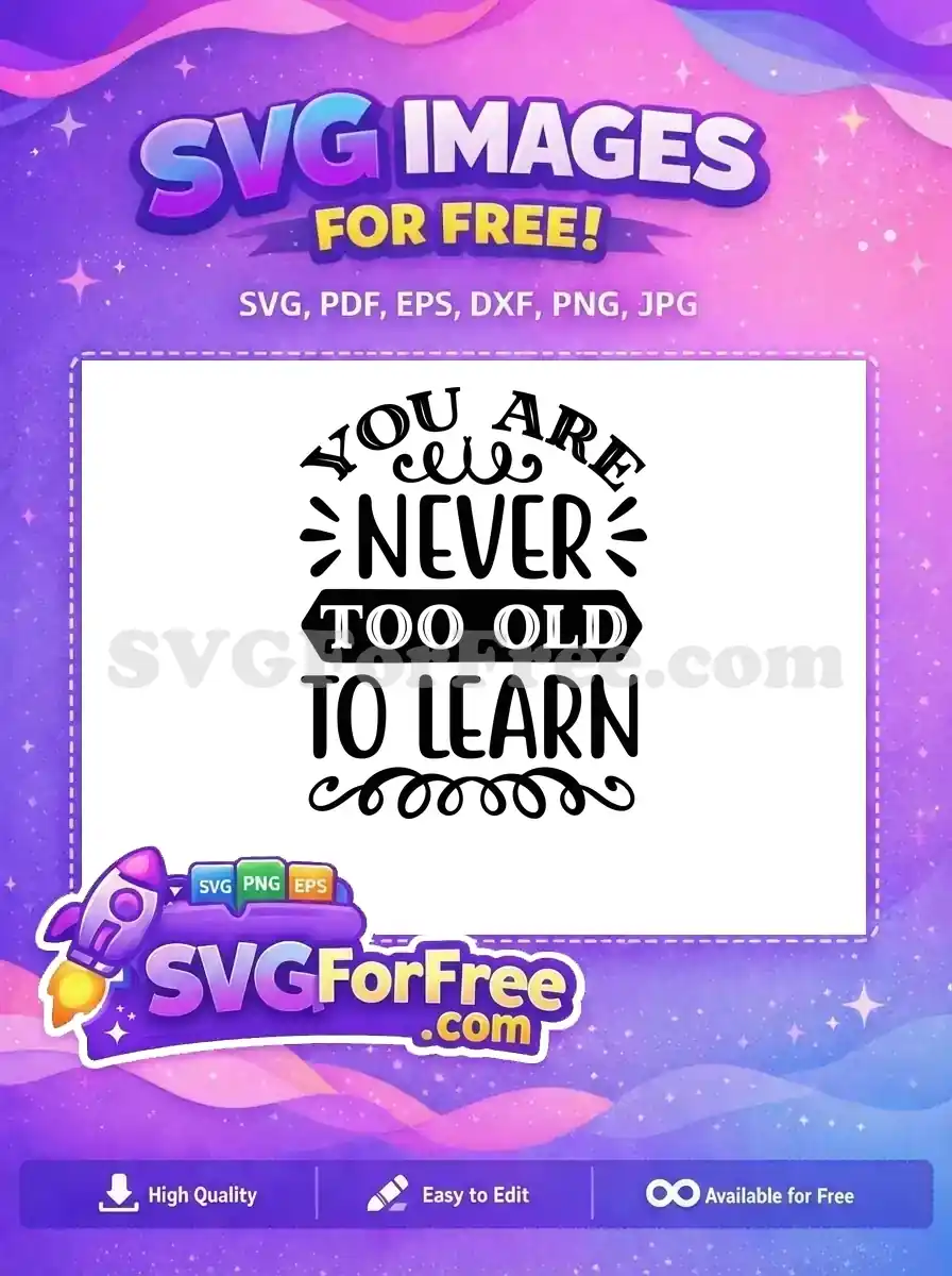 Stacked retro-style text ‘You are never too old to learn’ with swirls as a free download.