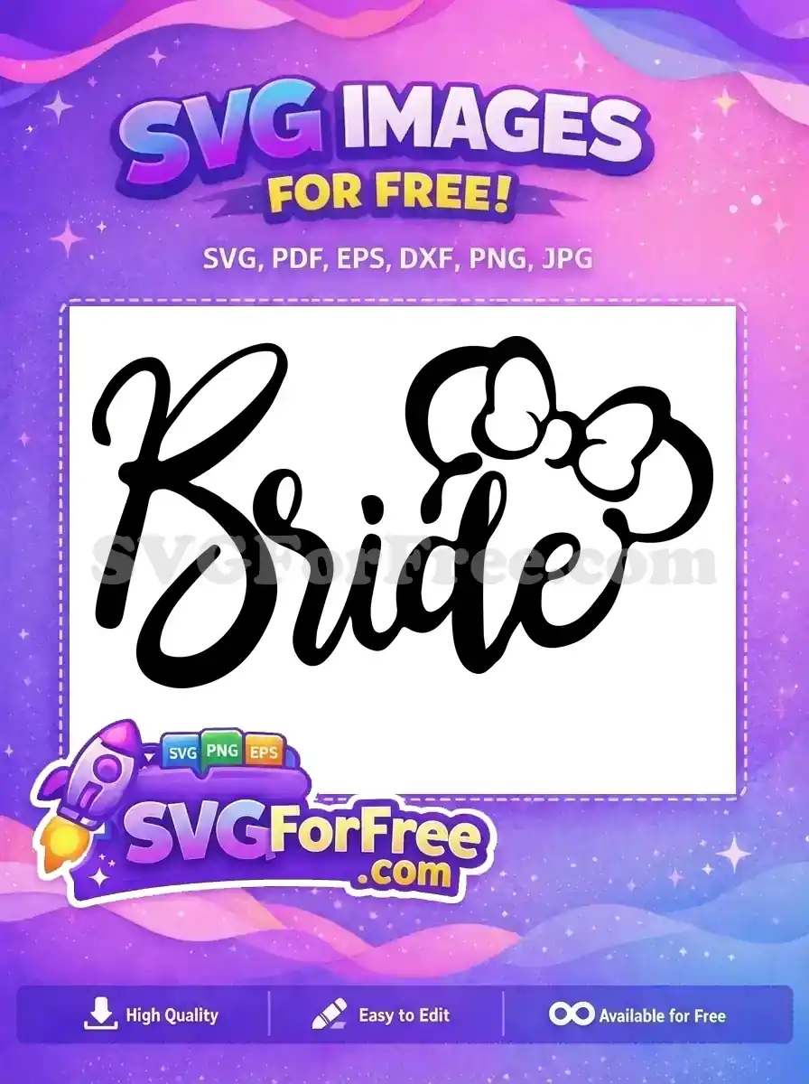Free Bride Text Free Minnie Bow Wedding Free SVG – Instant Download
