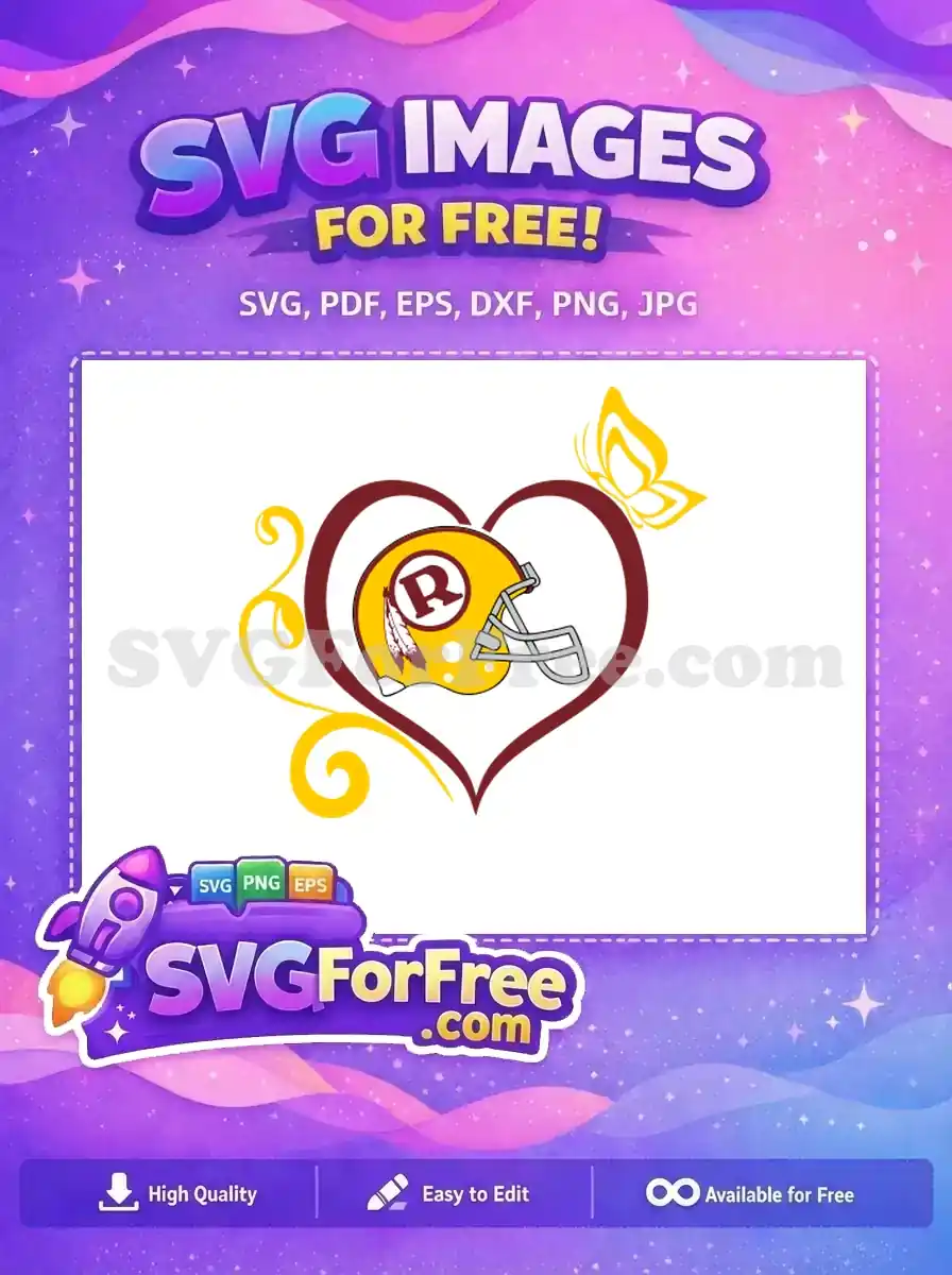 Free Burgundy Heart Free Yellow Accents Football Free SVG – Instant Download