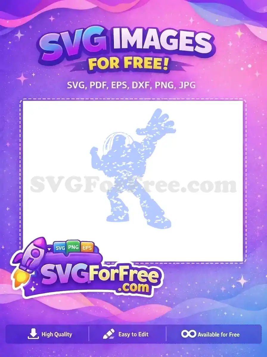 A silhouette of Buzz Lightyear in a heroic stance, featuring a grunge texture in light blue for free.