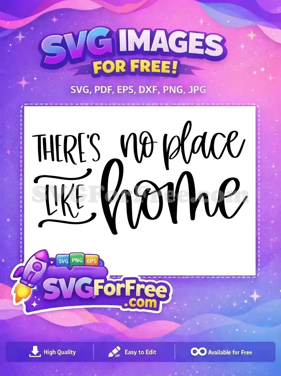 Free Calligraphy There's No Place Free Like Home Quote Free SVG – Instant Download