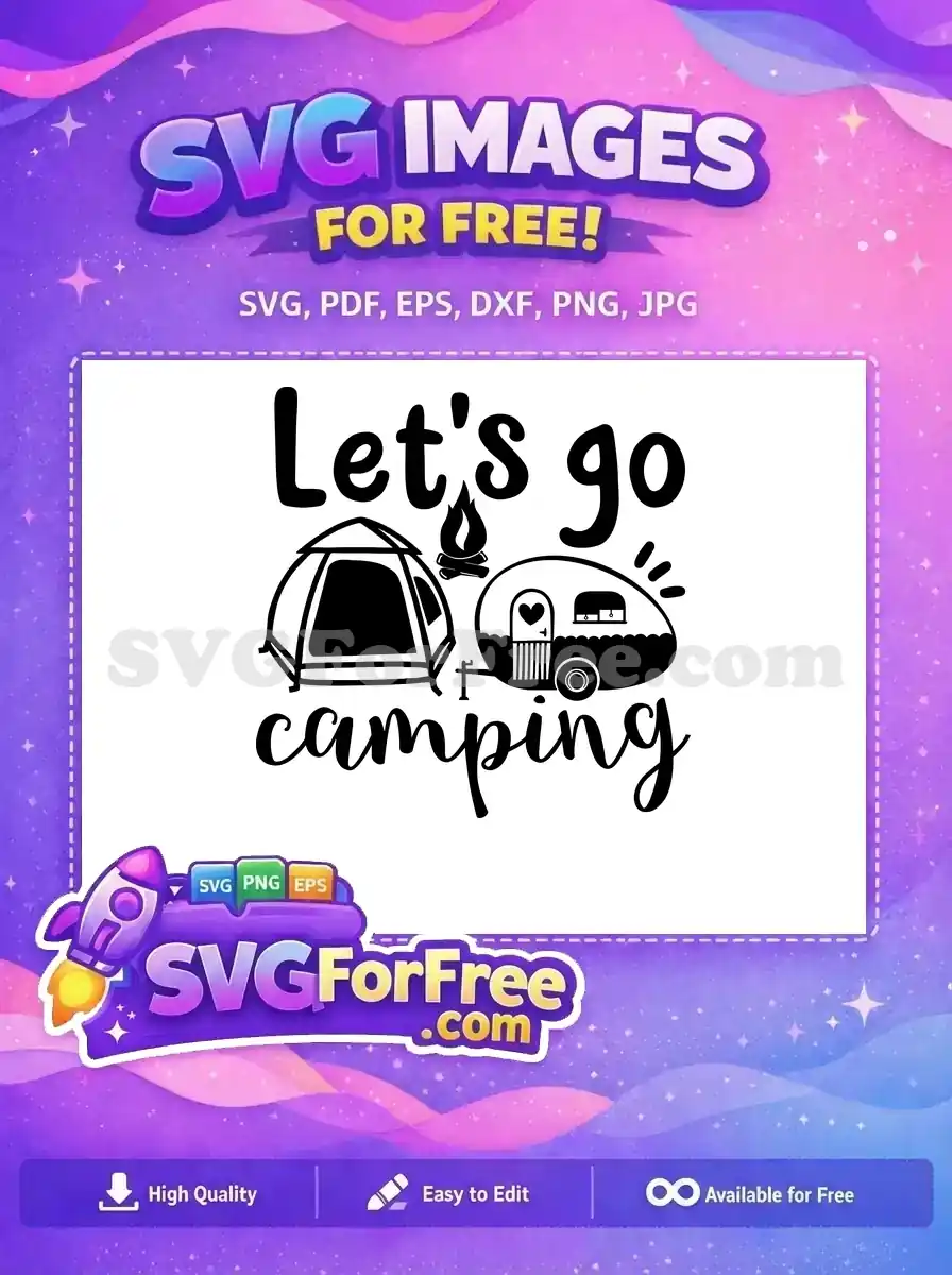 Download this free ‘Let’s Go Camping’ SVG design! Perfect for any outdoor enthusiast, offering charming adventure-themed graphics.