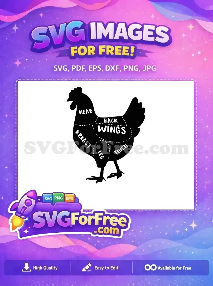 Free Chicken Butcher Chart Free Cuts Of Meat Diagram Free SVG – Instant Download