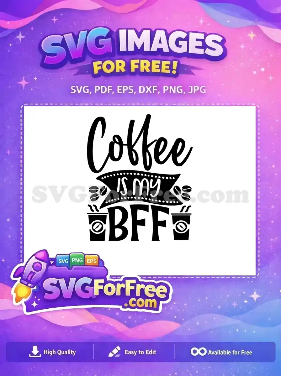 A playful free graphic stating ‘Coffee is my BFF’ with a heart and an illustrated coffee cup character.