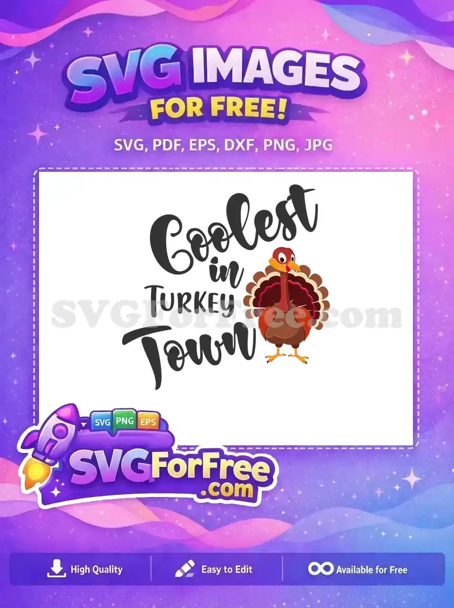 Free Coolest Turkey Free Town Thank You Free SVG – Instant Download