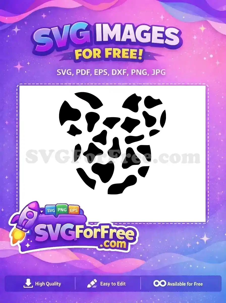 Discover this free design: an adorable Mickey Mouse head silhouette adorned with a playful cow print pattern. Perfect for adding a touch of unique charm to your projects. Download this free SVG now!