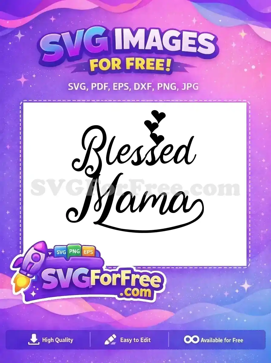Free Cursive Blessed Free Mama Hearts Mom Free SVG – Instant Download