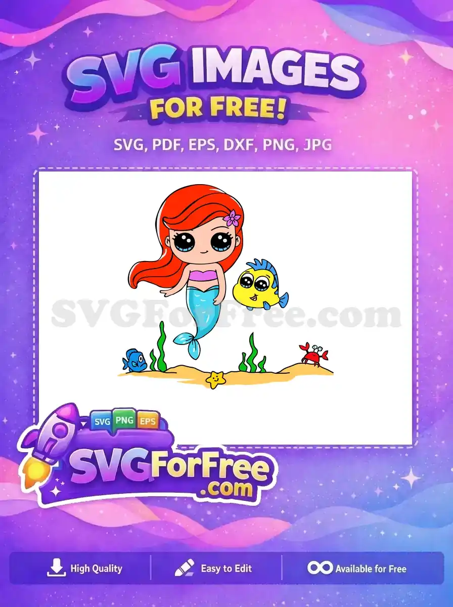 Free Cute Ariel Red Hair Free Flounder Little Mermaid Free SVG – Instant Download