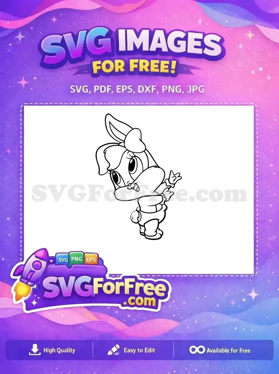 Free Cute Baby Lola Bunny Outline Free Playful Ruffled Sleeves Diaper Baby Looney Tunes Cartoon Free SVG – Instant Download
