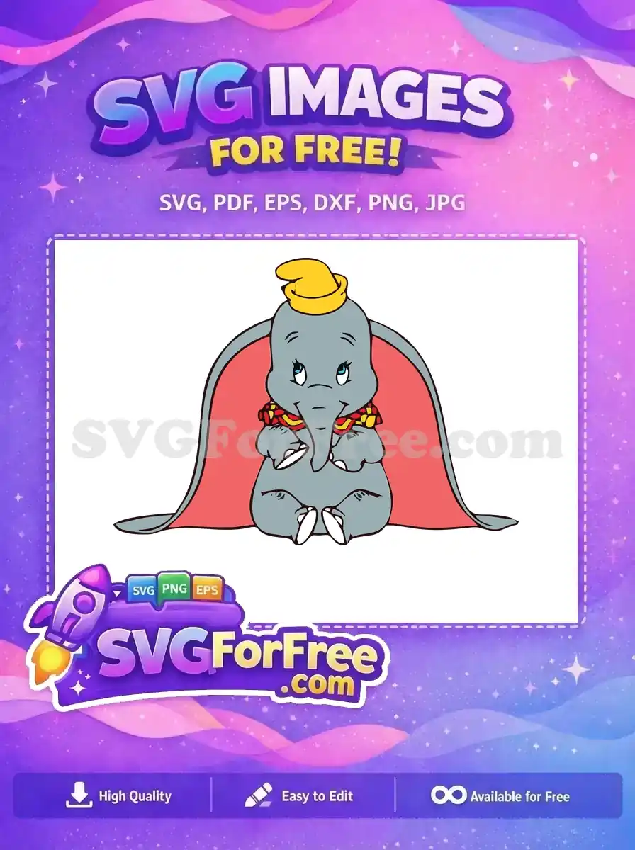 Free Cute Big-Eared Free Yellow Hat Collar Dumbo Disney Free SVG – Instant Download