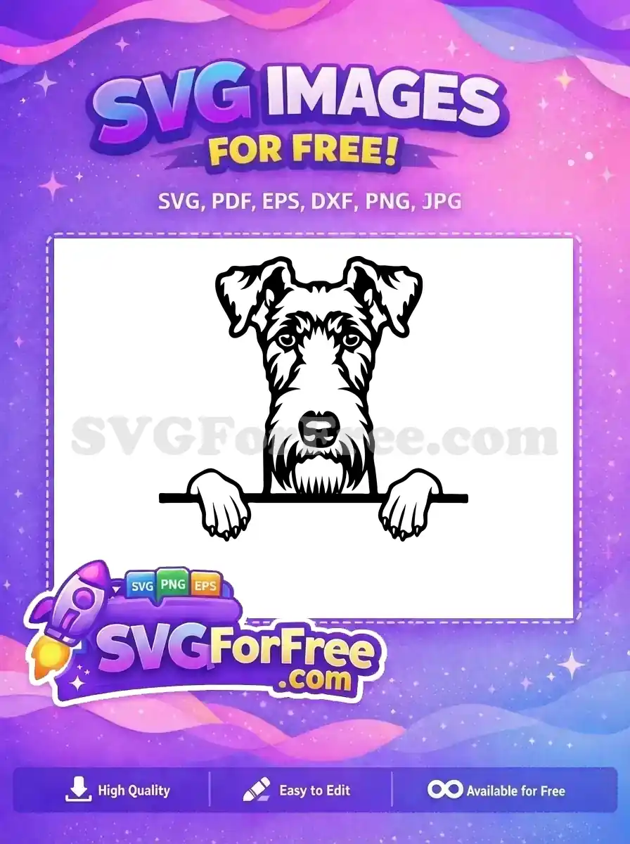 A Wire Fox Terrier or Airedale peeking with a scruffy beard and intense gaze. A free terrier design.