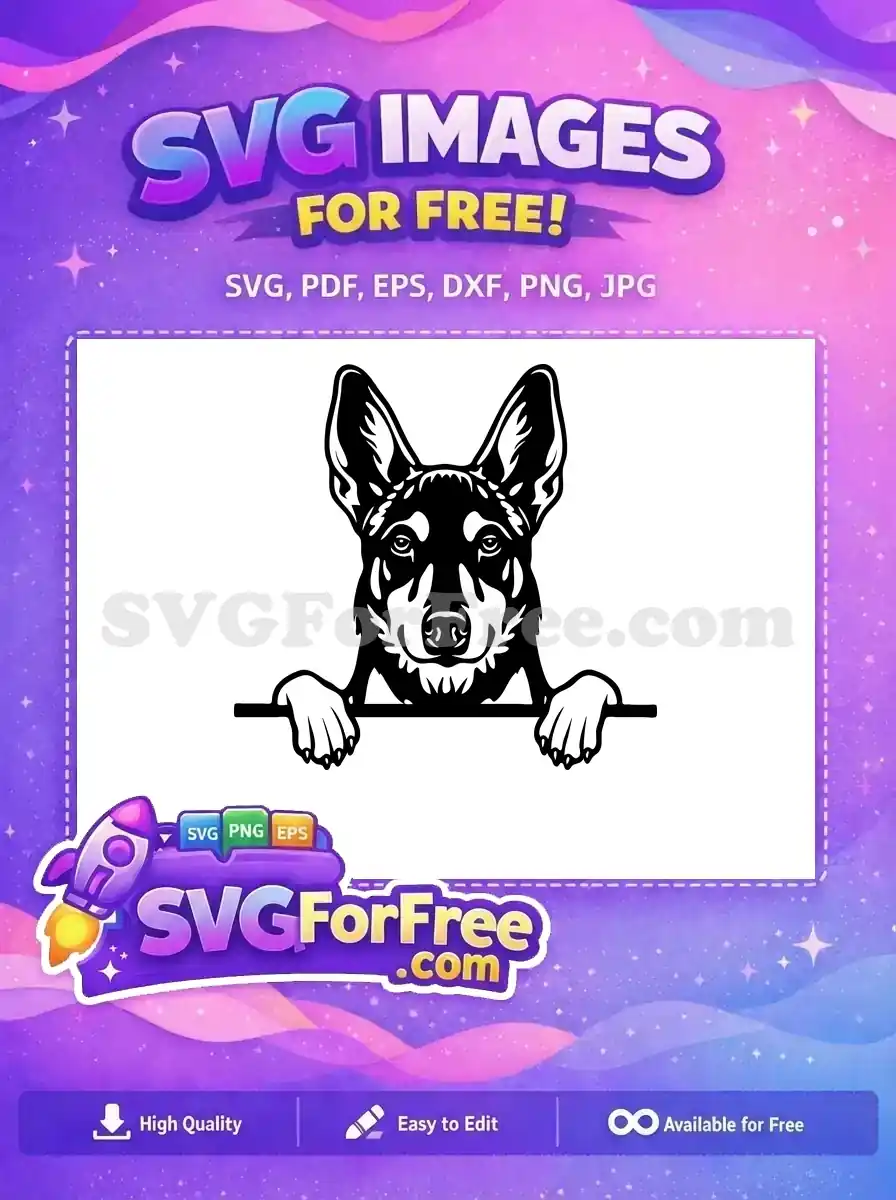 Shepherd mix dog with perked ears resting paws on a ledge, offering a free scalable vector file.