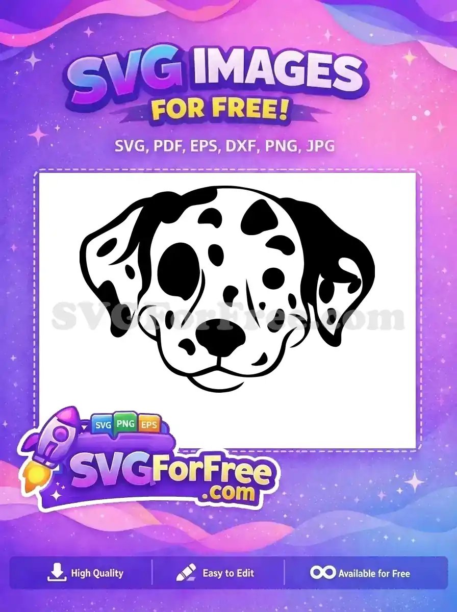 A detailed, realistic close-up of a Dalmatian’s face is provided in this stunning, no-cost vector portrait.