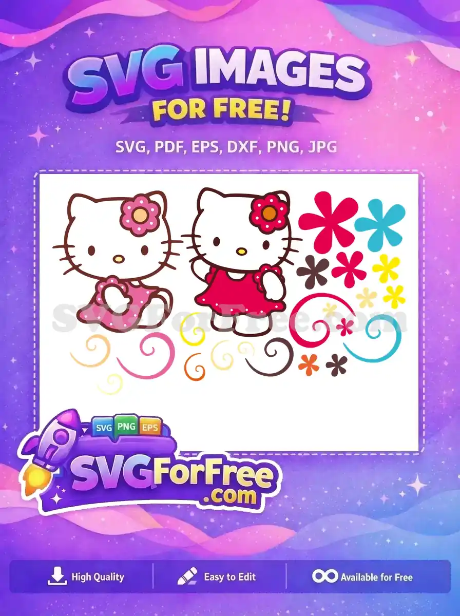 Free Cute Hello Kitty with Flowers Free Pink Dress Movie Free SVG – Instant Download