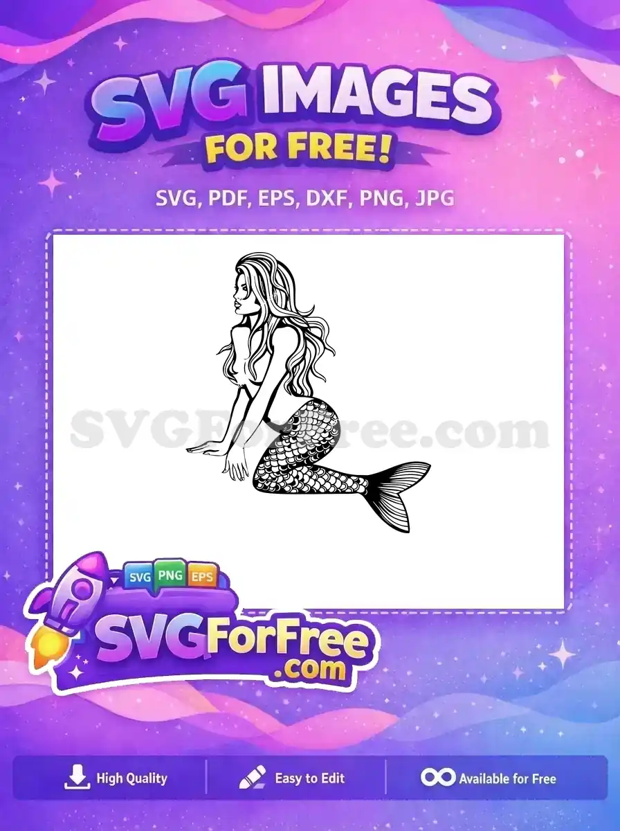 Free Cute Mermaid Free Silhouette Cartoon Underwater Free SVG – Instant Download