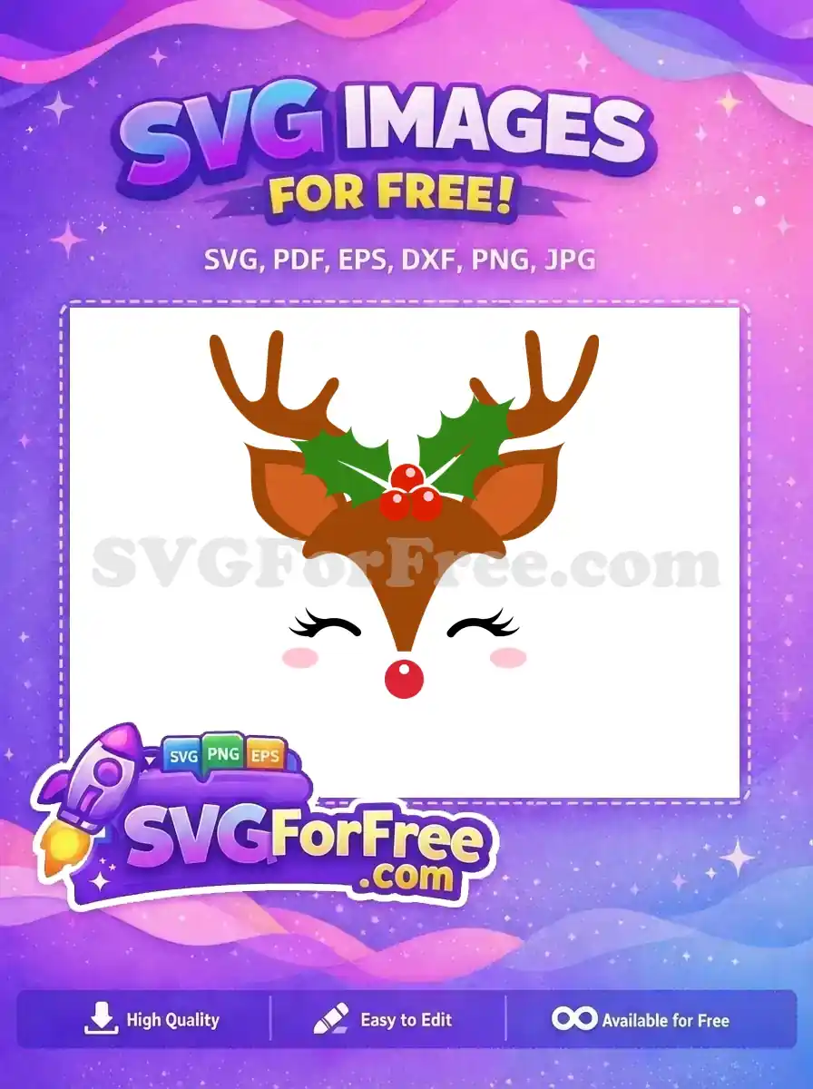 Free Cute Reindeer Holly Berries Christmas Face Free Holidays Free SVG – Instant Download
