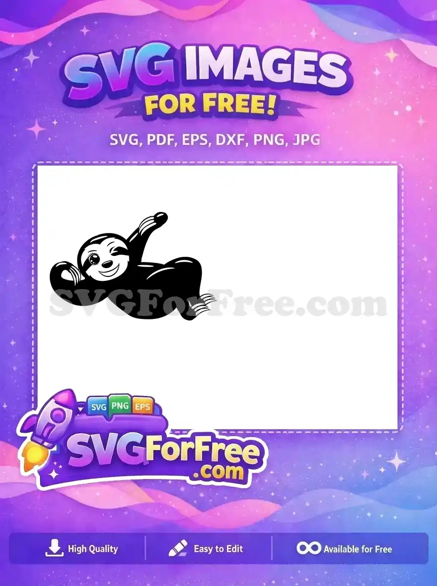 Free Cute Sloth Free Silhouette Smiling Sloth Free SVG 3 – Instant Download