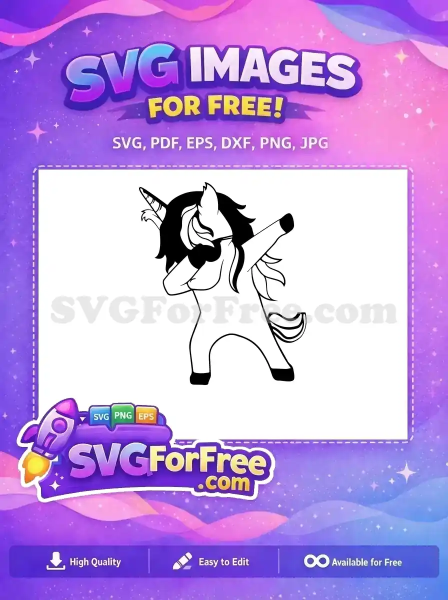 Black and white dabbing unicorn wearing sunglasses, a free cool design.