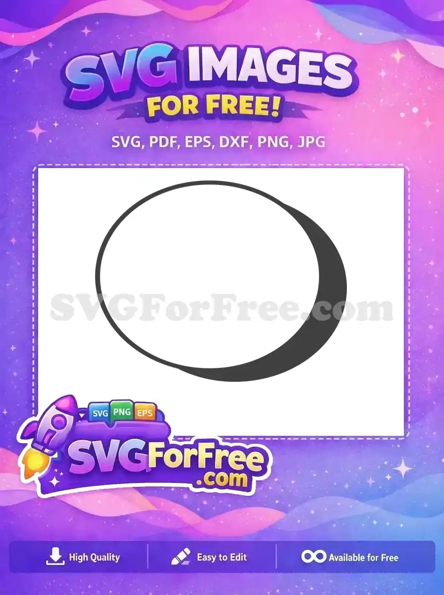 An outlined oval with a solid black crescent moon shape on its right side. A great free eclipse graphic.