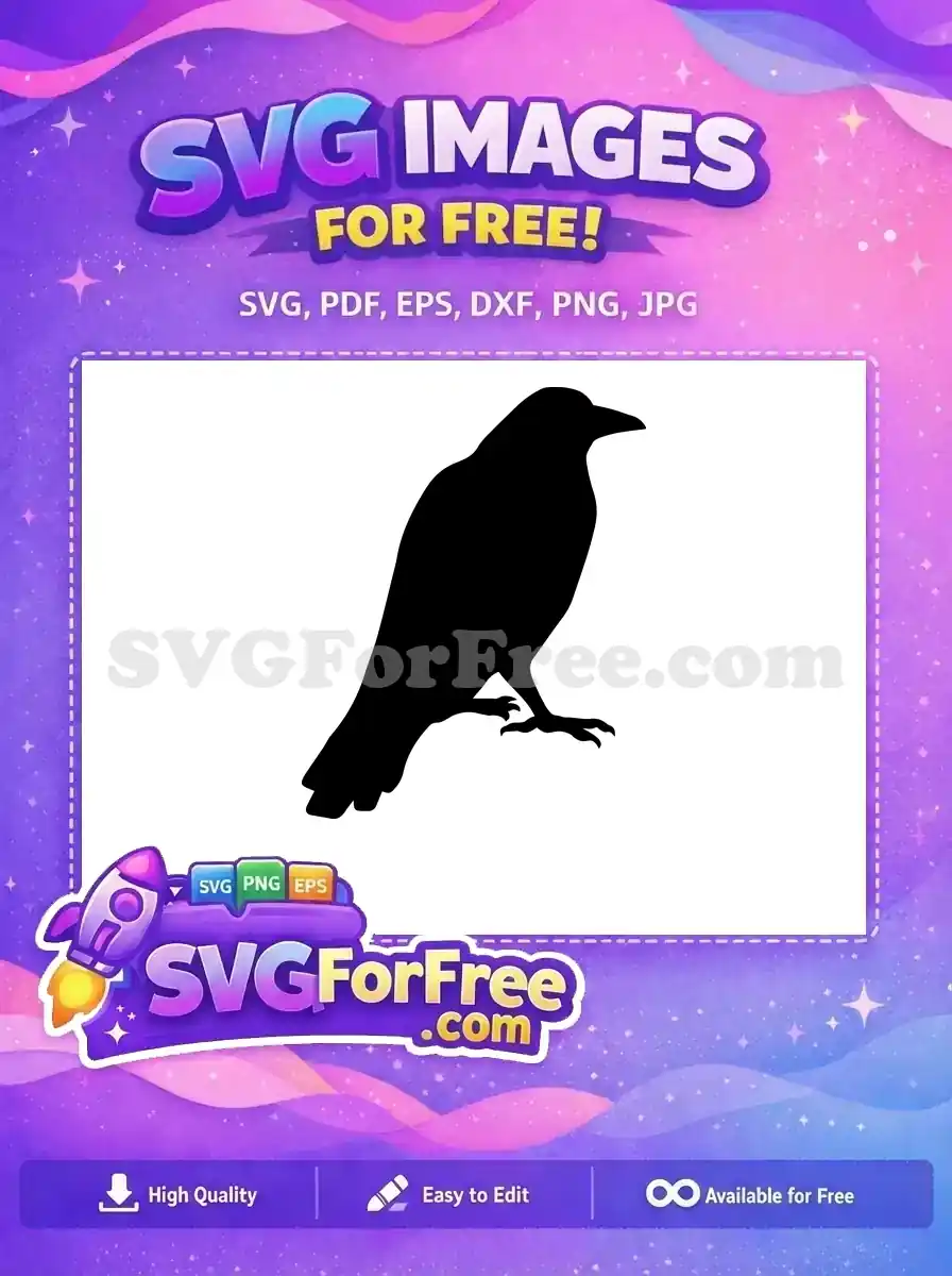 Free Dark Feathered Bird Free Perching Silhouette Design Crow Free SVG – Instant Download