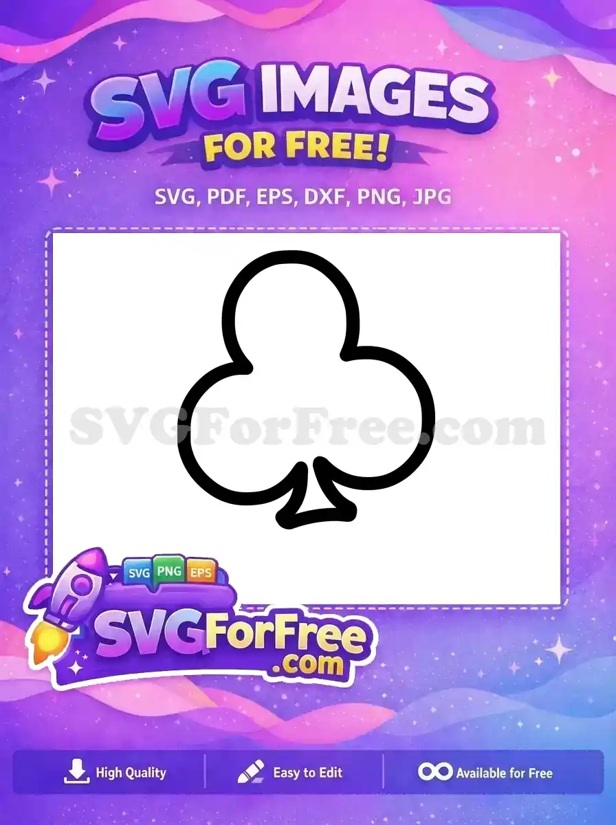 A simple black outline of the club playing card suit. A classic, no-cost vector graphic for any project.
